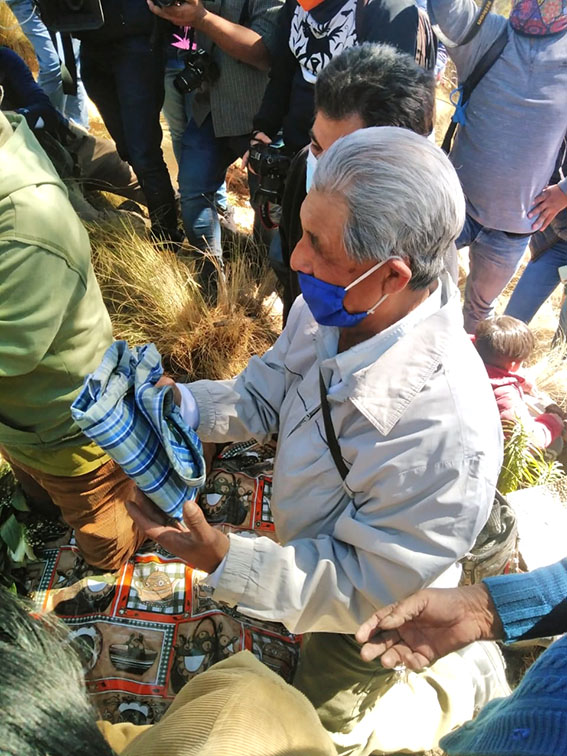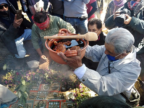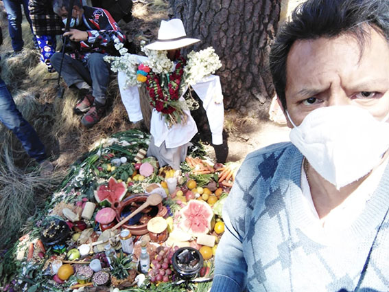 El pasado 12 de marzo, como lo comentamos, se realizó la festividad de "Don Goyo” “Chino” Popocatépetl, siendo don Antonio Analco “El Tiempero” de la comunidad de Santiago Xalitzintla, a la edad de 84 años y 48 años de subir bien, aún sube las cañadas y veredas por dónde camina en dirección al “ombligo” o “la Puerta Dimensional” que se encuentra exactamente en la parte sur-oriente de las faldas del volcán Popocatépetl, siempre don Toño, de cariño, acompañado de su señora esposa y dos asistentes para visitar y conmemorar el cumpleaños de Gregorio “Chino” Popocatépetl. Caminamos aproximadamente 7 kilómetros, para llegar al actual punto de celebración a don Goyo. Elaboramos la ofrenda el sábado, la cual está representada por pan, arroz, amaranto, maíz de siete colores, fruta de temporada, arroz mole de atole, flores, de diversos colores, pan dulce, cacao, ropa, zanahoria, pulque, lechugas, jitomates, cebolla, etc.