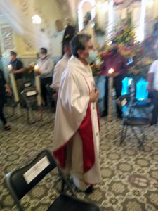 Dignándose a presidir la sagrada eucaristía el Pbro. Lic. Andrés Ramírez Torres, párroco de san Pedro apóstol, Cholula. Pue.