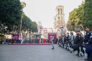 El Gobierno del Estado de Puebla reafirma su compromiso de trabajar con legalidad, coordinación y visión de futuro para consolidar una entidad más justa, segura y próspera, honra su historia y genera bienestar para las y los poblanos. Como parte de la ceremonia conmemorativa, se realizó el pase de revista a elementos de la Secretaría de la Defensa Nacional (DEFENSA), Guardia Nacional (GN), policía estatal, policía municipal y Protección Civil, en reconocimiento a su labor permanente en favor de la seguridad y la paz social.