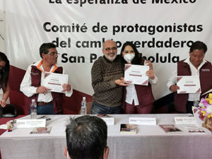 Moisés Ahuatl, Consejo de MORENA, y Efrén Osornio, dirigente de la Agrupación Cholulteca Amplia, ACHA, organizaron el evento, en el cual tuvieron como invitada especial a la Diputada local Tonantzin Fernández, y al Dr. Carlos Figueroa Ibarra, Secretario Nacional de los Derechos Humanos del CEN de MORENA.