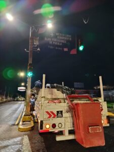 Para evitar afectaciones en la circulación vehicular, los trabajos fueron programados en horarios nocturnos y de madrugada, utilizando grúa hidráulica y equipos especializados que permitieron intervenir sin generar congestión en la vialidad.
