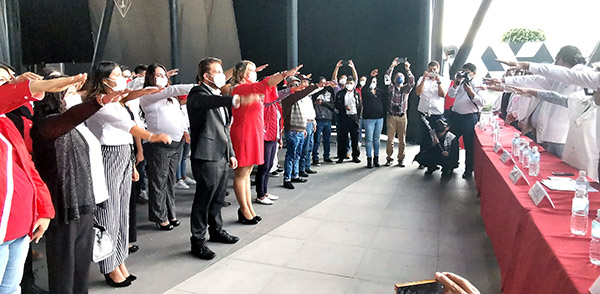 Con un mínimo de militante priistas, quienes respetaron la sana distancia y siguieron todas las medidas preventivas de salud, como usar el cubre-boca, se llevó a cabo la toma de protesta de la nueva dirigencia, así como de quienes integran el equipo de trabajo de César Jiménez, integrado por jóvenes entusiastas, quienes están conscientes del escenario que prevalece contra la imagen de dicho instituto político.