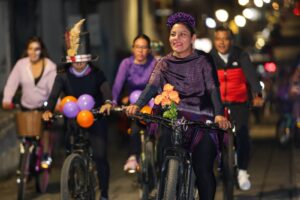 Previo a la inauguración, se realizó una rodada alusiva al Día de Muertos y posteriormente un recorrido por la exposición de tumbas artesanales.