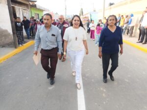 De igual forma, la presidenta municipal acudió a la junta auxiliar de San Cosme Texintla, donde, acompañada del presidente auxiliar Francisco López y de la titular de la Secretaría de Infraestructura, Narcisa Cariño, inauguró la rehabilitación de la calle Cholula Poniente, en el tramo comprendido entre las calles Hidalgo y Morelos Sur.