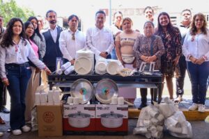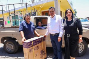 Para continuar con el apoyo a los desayunadores escolares, la Dirección de Atención Alimentaria del DIF entregó utensilios para la escuela Dr. Alejandro Fleming y un refrigerador para el CAIC Coronango.