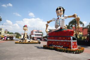 Cuautlancingo.- La explanada municipal de Cuautlancingo ya luce un ambiente lleno de tradición y color con la instalación de cinco catrinas monumentales, que marcan el inicio de la temporada de Fieles Difuntos en el municipio y sirven como punto de encuentro y fotografía para las familias.