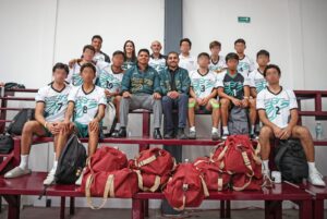 El edil acompañado de Yoshi Andrés Lira Navarro, Regidor de Educación, Deporte y Juventud Asimismo, expresó su respaldo al equipo que representa al estado de Puebla, a quienes exhortó a potenciar sus capacidades, trabajar en equipo y dar lo mejor de sí en cada encuentro.