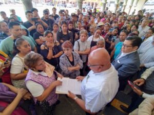 Este miércoles, comerciantes del Mercado Cosme del Razo acudieron de manera respetuosa a la presidencia municipal de San Pedro Cholula para entregar el pliego petitorio acordado durante la mesa de diálogo celebrada el pasado lunes 21 de julio.