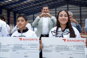 “Antes de que vayan a competir, les estamos entregando un estímulo de 10 mil pesos a cada uno de los 705 atletas y entrenadores. Son 7 millones y medio de pesos, porque los padres de familia dan todo por ustedes. Un padre, una madre que se preocupa por un hijo para que entrene un deporte, es un ángel que sabe la herencia que le está dando a su hijo. El deporte los transforma mentalmente”, señaló Alejandro Armenta.