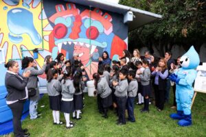 Como parte del acto protocolario, se inauguró un mural que contiene un mensaje artístico a fin de sensibilizar sobre la escasez de agua y la importancia de tomar acciones responsables. Además, se presentó una obra de teatro que complementa esta campaña de concientización dirigida a la niñez y perteneciente al programa “Cosechando Lluvia, para una Escuela Sustentable”.