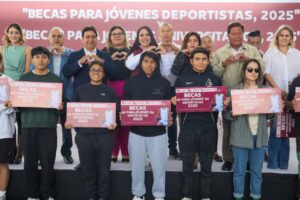 Bajo esta premisa, la presidenta municipal, acompañada de Mauricio García Castillo, subsecretario de Deporte estatal; Cecilia Lemus, secretaria técnica del Pleno; Moisés Ahuatl, secretario de Bienestar municipal; así como regidoras y regidores del Ayuntamiento, encabezó la Entrega de Becas para Jóvenes Universitarios y Jóvenes Deportistas 2025.