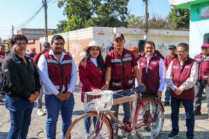 San Pedro Cholula.- Con el objetivo de mejorar las condiciones de trabajo del personal del Sistema Operador de los Servicios de Agua Potable y Alcantarillado de San Pedro Cholula (SOSAPACH), la presidenta municipal Tonantzin Fernández y el director del organismo, Francisco Flores Campos, realizaron la entrega de 13 bicicletas destinadas a las áreas operativa y comercial.