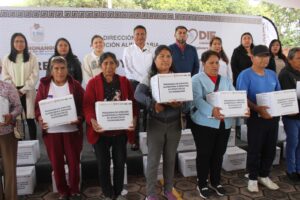 En la entrega de apoyos alimentarios asistieron Karla Viridiana Tepo Hernández, Coordinadora de Alimentos de la Microrregión 19 del DIF Estatal; la síndico municipal, Esther Pajarito Cortés; el secretario general del Ayuntamiento, Carlos Tula Gutiérrez.