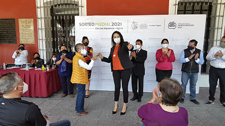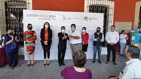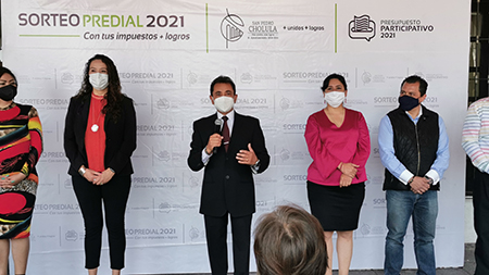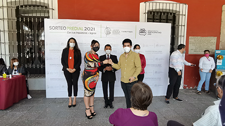 CHOLULA.- Regidores del Ayuntamiento llevaron a cabo la entrega de los premios del sorteo Predial Cholula 2021, ante la presencia de la interventora de gobernación, estando presentes la mayoría de los ganadores.
