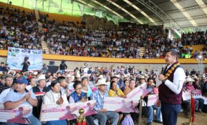 Al realizar un llamado a las y los presidentes municipales para que apoyen los comités ciudadanos ciudadanos del Programa de Obra Comunitaria, el secretario de Bienestar, Javier Aquino Limón, informó que con una inversión de 28 millones de pesos, se entregaron 87 certificados del programa en favor de habitantes de 12 municipios.