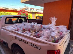 La entrega de víveres incluyó alimentos no perecederos, agua embotellada, productos de higiene personal y artículos de primera necesidad, con el objetivo de aliviar de manera inmediata las necesidades básicas de los damnificados.