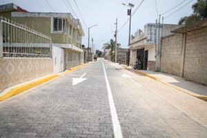 Cuautlancingo.- Como parte del fortalecimiento de la infraestructura básica del municipio, el presidente municipal Omar Muñoz entregó la pavimentación con adoquín en la Primera Privada Ejido, entre calle Independencia y calle Ejido, en la junta auxiliar de Sanctorum.