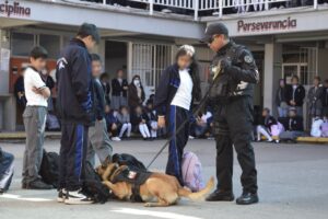 Durante la actividad se realizaron demostraciones de binomios caninos, enfocadas en promover entornos de bienestar, así como en acercar a la juventud al trabajo que realizan los cuerpos de seguridad, fomentando la confianza, la cultura de la legalidad y la participación activa en la prevención del delito.