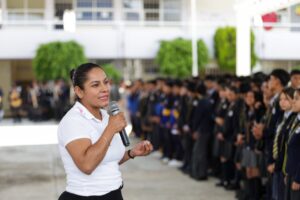 “Un Día con la Presidenta en tu Escuela” busca motivar a las y los estudiantes para mejorar su rendimiento académico mediante actividades de reconocimiento, convivencia con la presidenta municipal, visitas a espacios culturales y recreativos, así como talleres de prevención de adicciones, violencia y acoso escolar.