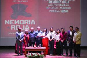 San Pedro Cholula, Pue. – Con el objetivo de promover la historia, la cultura y la lectura, el titular de la Secretaría de Cultura del estado, Fritz Glockner, presentó su libro Memoria Roja en el Teatro de la Ciudad Sagrada, en San Pedro Cholula, acompañado por la presidenta municipal, Tonantzin Fernández.