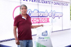 Por su parte, Jesús Gregorio Paisano, secretario de Desarrollo Económico y Sector Agropecuario, indicó que a través del programa “Cultivando el Campo Contigo” se beneficia de manera directa a 800 familias agricultoras con la entrega de 160 toneladas de fertilizante, insumo que permitirá aumentar la producción en más de 400 hectáreas de cultivos como maíz, frijol, verduras y legumbres.