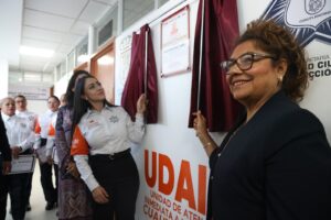 Cuautlancingo.- La presidenta del Sistema Municipal DIF (SMDIF), Tere Alfaro, encabezó la instalación de la Unidad de Atención Inmediata a las Mujeres (UDAIM) en el municipio, así como la develación de la placa de validación estatal y el arranque del operativo con perspectiva de género y proximidad social.