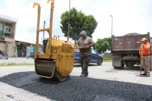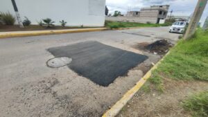 Los trabajos de bacheo y las obras complementarias son realizadas con recursos del Fondo de Aportaciones para el Fortalecimiento de los Municipios (FORTAMUN) 2025.