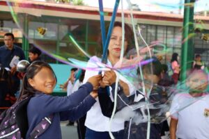 Amozoc.- Con el objetivo de acercar el conocimiento científico a las y los niños del estado, Myriam Aquino, titular de la Secretaría de Ciencia, Humanidades, Tecnología e Innovación (SECIHTI) acudió a la Escuela Primaria Miguel Hidalgo para llevar al alumnado el programa “Ciencia sobre ruedas”.