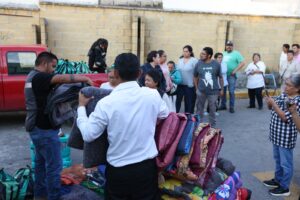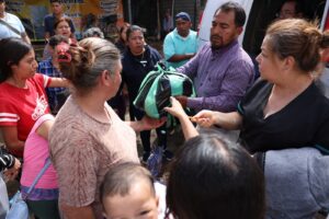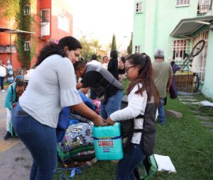Omar Muñoz también acudió a Geovillas San Jacinto perteneciente a la junta auxiliar de San Lorenzo Almecatla, para supervisar los daños y entregar despensas, cloro y cobijas a los pobladores afectados.