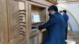 La mañana de este martes, el Dr. Luis Alberto Arriaga Lila, hizo la entrega oficial del órgano restaurado, al párroco Andrés Torres Ramírez, ante la presencia del Lic. Susano Toxqui Guevara, con la representación de Pro Cholula, organización que desde hace años ha venido trabajando en el rescate de los órganos de diversos templos católicos del municipio.