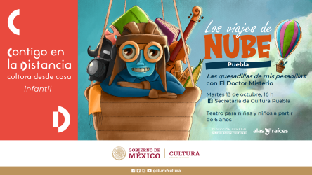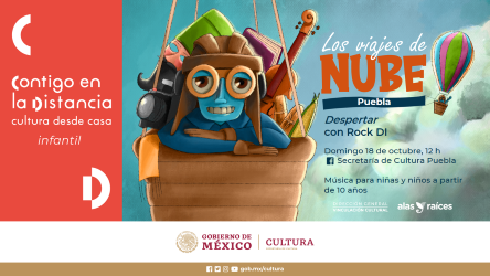 PUEBLA.- En conjunto con la Coordinación Nacional de Desarrollo Cultural Infantil "Alas y raíces", la Secretaría de Cultura presentará mediante Facebook Live "Los viajes de nube", un recorrido cultural por 10 estados de la República expuesto en videos de presentaciones artísticas.