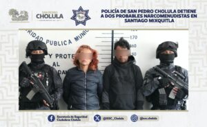 San Pedro Cholula.- Como parte de las acciones operativas implementadas por la Secretaría de Seguridad Ciudadana de San Pedro Cholula (SSC Cholula), se logró la detención de María Guadalupe “N”, de 29 años, y Edgar “N”, de 38 años, por su probable responsabilidad en la comisión de delitos contra la salud, en su modalidad de narcomenudeo, en el Barrio de Santiago Mixquitla.