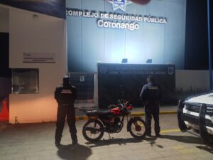 De igual forma, a través de cabina de radiocomunicación, se reportó una motocicleta Italika FT150 color arena, abandonada en la calle Centenario y privada Olvera, en Misiones de San Francisco. Tras la inspección, se corroboró su estatus de robo.