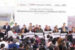 Puebla.- Con la entrega de 46 certificados de Infraestructura Educativa y 104 de Mobiliario Básico en el Centro Escolar José María Morelos y Pavón, el Gobierno del Estado reafirmó que la educación es una prioridad para el gobernador Alejandro Armenta, señaló la secretaria de Bienestar, Laura Artemisa García Chávez, al destacar que estas acciones impulsan la dignificación de los espacios escolares en Puebla, con una inversión total cercana a los 122 millones de pesos.