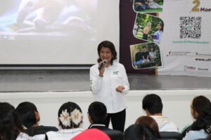 La rectora Mirna Toxqui Oliver encabezó la bienvenida oficial a las y los aspirantes. En su mensaje, destacó la importancia de elegir una institución con calidad académica acreditada y visión de crecimiento. “La formación profesional requiere un entorno que impulse el desarrollo integral de las personas y de su comunidad”, señaló.