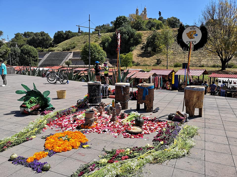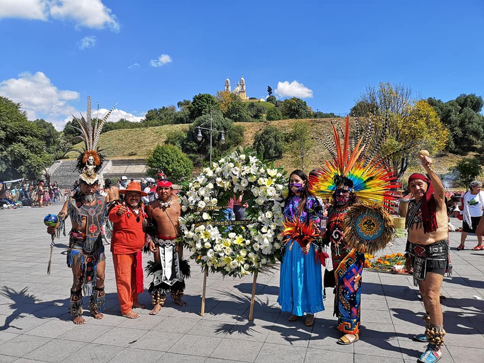 Al finalizar el ritual prehispánico, se trasladaron al monumento de los caídos, en el parque de la ciudad, en donde colocaron una ofrenda floral, y montaron guardia de honor, respetando las medidas sanitarias, como el uso de cubre-boca, que en esta ocasión eran bordados a mano, con pasajes cholultecas, y finalmente dar por terminado el evento.