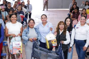 Por su parte, la directora general del SMDIF, Aurora Tlatehui Cuautle informó que en esta entrega 60 futuras madres recibieron un paquete que incluye un extractor de leche eléctrico, un calentador y esterilizador de biberones, un rebozo fular elástico, además de un cobertor de100 x 80 cm., toalla con capucha, mameluco, artículos para el baño de la o el bebé, pañalera con cambiador portátil y una dotación de 40 pañales etapa 1. Además, las beneficiarias participaron en pláticas y talleres sobre cuidados maternales.