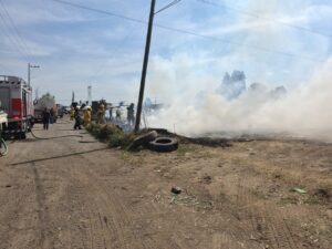 Coronango.- Un nuevo incendio de residuos se registró en una recicladora clandestina ubicada sobre la calle José María Morelos, en la junta auxiliar de San Francisco Ocotlán.