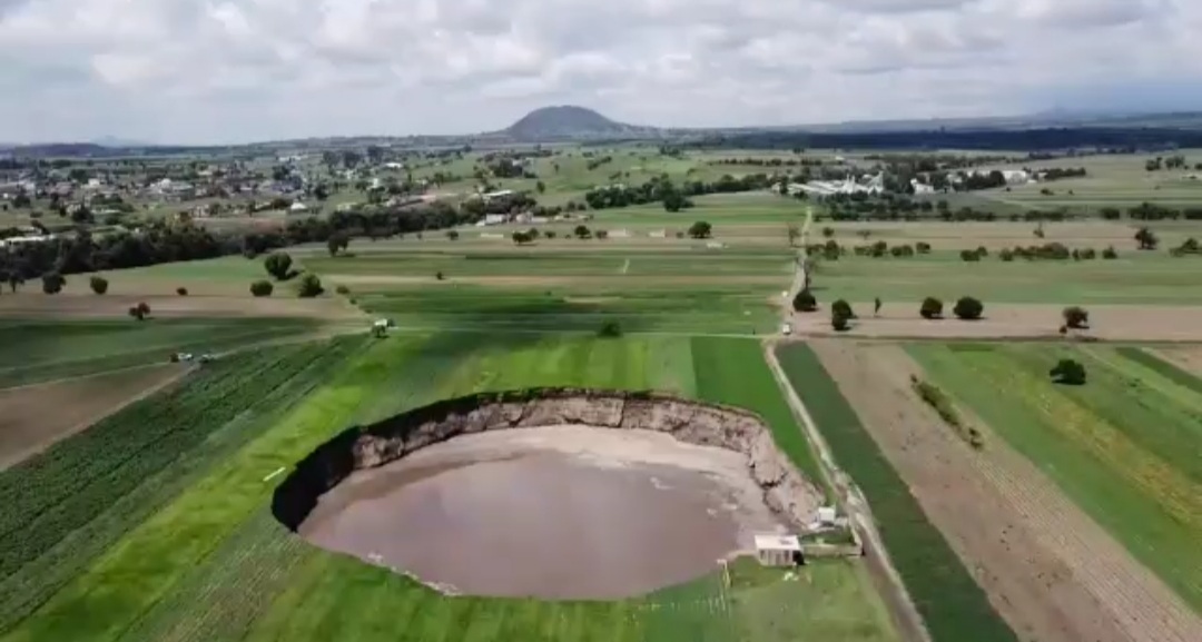 JUAN C. BONILLA.- El socavón se tragó la casa que estaba a sus orillas, en la junta auxiliar de Santa María Zacatepec, perteneciente a Juan C. Bonilla, se colapsó, por lo cual se amplía las medidas restrictivas para estar en la zona, como el volar drones en dicho lugar.