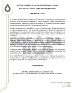 Finalmente, SOSAPAHUE hizo un llamado a la población a evitar este tipo de acciones y a reportar cualquier anomalía en la red de agua potable, con el fin de garantizar un suministro eficiente y equitativo para todos los habitantes del municipio.