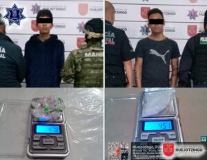 En operativos de prevención y vigilancia, se aseguraron a cuatro masculinos por presuntos delitos contra la salud. En la calle Mariano Matamoros, esquina con José María Morelos, del Cuarto Barrio, se detuvo a Alan Giovanni N., de 21 años, tras encontrarle 10 envoltorios con 4.78 gramos de una sustancia con características de la droga conocida como «cristal». En otro evento, en la calle San Ángel de la Junta Auxiliar de Santa Ana Xalmimilulco, se detuvo a Alexis N., de 27 años, con una bolsa de 4.51 gramos de una sustancia similar. Mientras que en el Boulevard Huejotzingo-Aeropuerto se aseguró a Alexander Israel N., de 21 años, con dos bolsas de 30 gramos de hierba verde con características de marihuana. Por último, en la calle Olmos, esquina con Avenida Las Moras, del fraccionamiento «Paseo de los Sauces», se detuvo a Roque Noé N., de 40 años, en posesión de seis bolsas de hierba verde con características propias de marihuana, una bolsa con material granulado similar al «cristal», un objeto punzocortante tipo daga, papel para liar y un objeto metálico con hierba seca. Todos los detenidos fueron puestos a disposición del Ministerio Público del Fuero Común para determinar su situación jurídica.