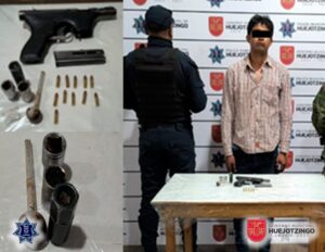 Huejotzingo.- Elementos de la Policía Municipal de Huejotzingo, adscritos a la Secretaría de Seguridad Ciudadana (SSC), realizaron tres operativos en distintos puntos del Municipio, resultando en la detención de cinco masculinos y un menor de edad por la aparente comisión de los siguientes delitos: portación ilegal de armas de fuego, tentativa de robo y posesión de sustancias ilícitas.
