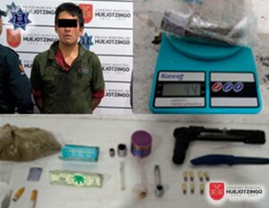 En el Tercer Barrio, en Avenida Guadalupe Victoria y 16 de Septiembre, se atendió el reporte de un robo a un mototaxi. Se detuvo a Luis Antonio N. (29 años) y a un menor de edad en posesión de un arma hechiza con ocho cartuchos calibre .22 y 44 gramos de presunta hierba color verde, con características similares a las de la marihuana. El masculino y los objetos asegurados fueron presentados ante el Ministerio Público, mientras que el menor fue trasladado a la Casa de Justicia para Adolescentes con los protocolos correspondientes.