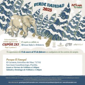 Como incentivo a la participación ciudadana, quienes entreguen su árbol navideño recibirán un boleto de entrada 2×1 para Africam Safari o Arboterra, fomentando además la educación ambiental y la convivencia familiar.