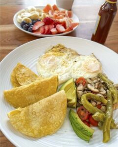 Uno de los momentos que más me emocionó fue ir a una tienda latina. Ver nopales, tortillas y queso Oaxaca fue como encontrar un pedacito de casa. Con eso pude preparar al día siguiente un desayuno de huevo con nopales, champiñones, jitomate, unas quesadillas y fruta.